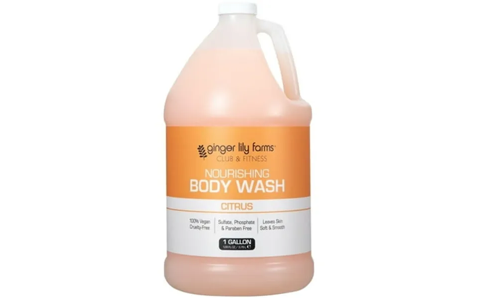Ginger lily farms club & fitness citrus nourishing body wash gently and effectively washes away dirt oil and bacteria with a creamy lather that leaves skin soft smooth and free of harsh chemicals. Rich creamy formula is enriched with naturally derived botanicals to soften nourish and reinvigorate skin leaving your body deeply hydrated and refreshingly clean. The refreshing citrus scent of fresh oranges and lime will leave you feeling soothed and refreshed. Perfect for washing away sweat and odor after working out. Toxin-free formula contains no harsh chemicals like parabens sulfates phosphates or gluten and is gentle enough for even the most sensitive skin. Ginger lily farms club & fitness nourishing body wash is 100% vegan cruelty-free and peta certified so you can feel good while using it. Commercial refill size is perfect for fitness centers locker rooms gyms and health clubs.