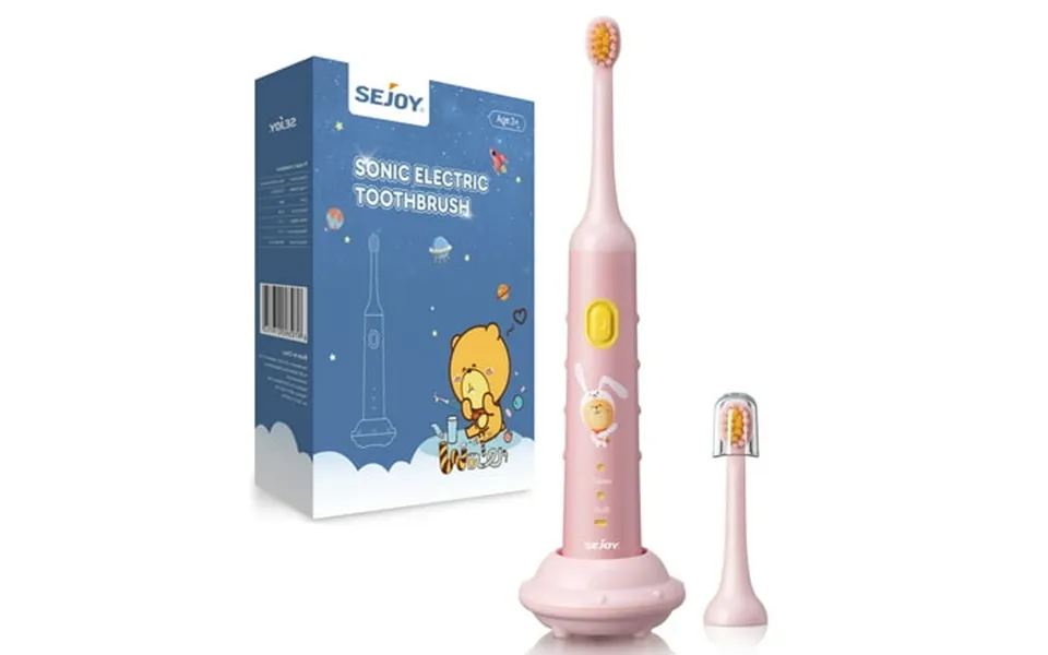Sejoy kids electric toothbrush use thin bristles to protect children s teeth. It is specially designed for children aged 3 allowing babies to develop a good habit of brushing their teeth from an early age. Kids sonic toothbrush cleans the teeth and gums effectively with a vibration frequency of 24000 times per minute which helps to remove the bacteria and plaque that cause tooth decay and gum disease. Non-slip-grip ergonomically suited for children s hands. The 2-minute timer ensures that your child always brushes for the dentist-recommended amount of time. It will remind every 30 seconds to change the brushing area.The brush will shut off automatically after 2 minutes. Child electric toothbrush has long battery life and wireless charging. So you don t need to buy batteries. Ipx7 waterproof high-level safety as it works with durable ni-mh battery. Battery life can last for 60 days on a full charge and has a low-battery indicator.