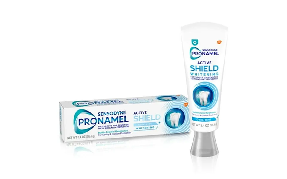 Sensodyne pronamel active shield whitening enamel toothpaste helps prevent cavities and reinforce enamel in a great tasting cool mint toothpaste. This cavity protection toothpaste builds 2x the acid resistance from day one against dietary acids versus your mouth’s natural defenses and offers 24 hour cavity protection to help keep your teeth strong and healthy 1 . Sensodyne pronamel active shield whitening toothpaste with fluoride lets fluoride bind to and act on enamel to remineralize the surface of teeth and improve resistance against future acid attacks. It also helps gently whiten teeth. This anticavity toothpaste helps defend against cavities and erosion. With enhanced foaming action this cool mint flavored toothpaste features a great taste that bursts with freshness. Start building resistance with sensodyne pronamel active shield today to help keep your teeth strong and healthy for life 2 . 1 With a healthy diet. Brush twice daily to keep up protection. 2 With continued twice daily brushing a healthy diet and regular dental visits.