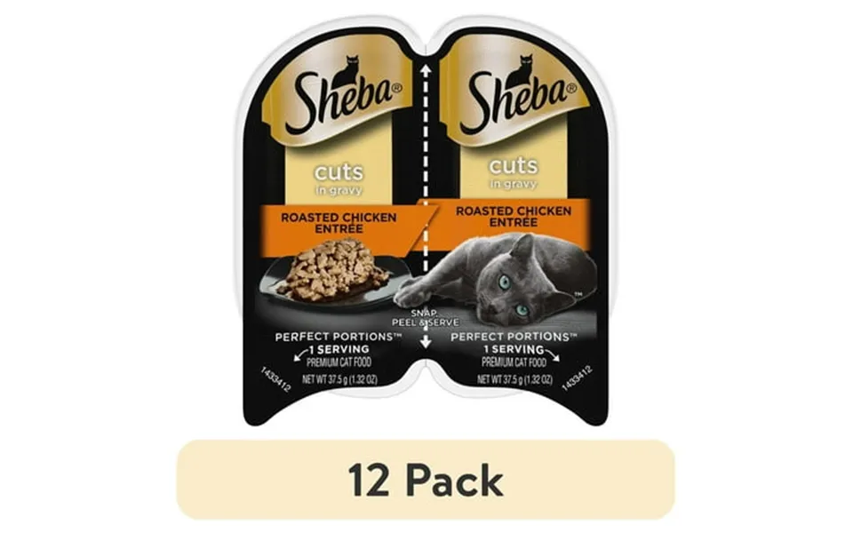 Cats know what they want: the delicious taste of sheba perfect portions wet cat food cuts in gravy. The succulent cuts of roasted chicken in a delicious gravy deliver a wet cat food your feline will love. Sheba perfect portions wet cat food has two convenient portioned trays for a delicious serving with zero messy leftovers every time. Sheba wet cat food is formulated without grains corn or soy and contains no artificial flavors or preservatives although trace amounts may be present due to cross-contact during manufacturing. Even the pickiest cat is sure to enjoy it. Savor every delicious moment with sheba wet cat food cuts in gravy.