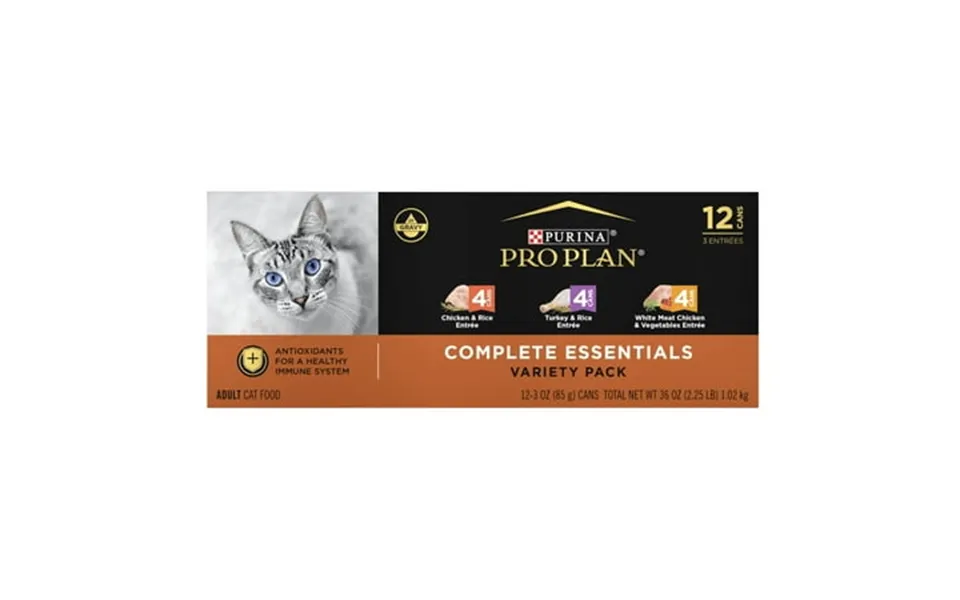 Let your cat pick her mealtime favorites when you stock your pantry with this purina pro plan complete essentials chicken and turkey favorites adult wet cat food variety pack. Each recipe is made with real chicken or turkey and every ingredient is chosen for a specific purpose. Rich gravies add flavor and moisture to these delectable wet cat food varieties while the tender textures invite your cat to nibble to her heart s content. Every serving provides her with 25 essential vitamins and minerals plus taurine an amino acid to support her overall health and wellness. These canned cat foods are formulated to help support your cat s healthy skin and coat so that she can look her best every day and essential nutrients help to support her healthy immune system. You know your time is valuable so you savor every minute you spend with your pet. Give her the nutrition she needs for an active life plus the value she deserves and craves every time you fill her bowl with purina pro plan wet cat food. With over 90 years of experience pushing pet nutrition forward purina is a trusted leader in the pet nutrition industry. Each batch of their food undergoes regular checks to monitor safety and quality throughout the manufacturing process for formulas to meet or exceed industry standards.