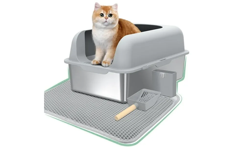 Anyask s stainless steel cat litter box with lid high wall sides enclosure for small mulit big cat made of high-quality stainless steel this cat litter box is corrosion-resistant wear-resistant and not easy to rust. This high sided litter box can maintain good condition even after long-term use greatly extending the service life of the cat litter box. Because the cat litter box has a smooth stainless steel surface it is not easy to adhere to cat litter or pet excrement. When cleaning you only need to use water and mild detergent to easily remove dirt which is both hygienic and convenient. Stainless steel has natural antibacterial properties and can effectively inhibit the growth of bacteria providing a healthier and safer living environment for large and medium cats. With an extra-large 30l capacity the stainless steel cat litter box reduces the frequency of replacement reduces garbage generation in the long run and is more environmentally friendly. Whether used indoors or outdoors the stainless steel cat litter box can adapt well to various environments and will not be easily damaged by moisture or temperature changes. Our non-toxic and odorless cat litter box does not contain chemicals such as bpa in plastic that may be harmful to pets making it safer and more reliable. Anyask stainless steel cat litter box is a practical and healthy choice especially for families who pursue long-term cost-effectiveness and pet health. Anyask cat litter box a perfect gift choice for cat...