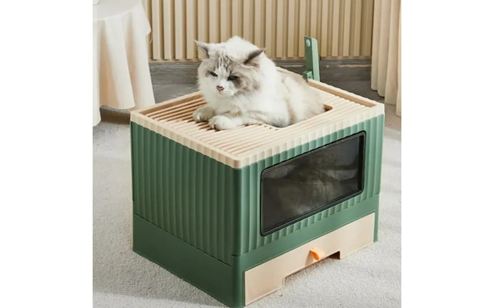 Multifunctional design the included cat litter shovel can be hung up for convenient use cat self groomer design on the side enables grooming and massaging allowing your cats to stay clean and refreshed additional storage space on the top to place cat poop bags and deodorant packs for your convenience. One-way design cats can enter from the front entrance and jump out from the top large hollowed-out area on ceiling helps to filter any lingering litter into the box when the cat jumps out satisfy your cat’s natural jumping instinct. Slide-out tray the cat litter pan is structured with a slide-out tray featuring high edges that’s highly polished for easy cleaning while preventing litter and spray spillage. Spacious area generous interior space allows your furry friend to easily turn around or enter exit enclosed design keeps everything inside so your cat will feel safe and comfortable and also helps block unpleasant odor. Quality material premium pp material makes this cat litter box sturdy with high impact resistance the top won’t deform easily creates a safe and functional solution to ensure your pet’s safety. Specification: brand: mgaxyff item type: enclosed litter box material: pp ps size: 17.7 X 13.4 X 13.2 In usage: folding cat litter box package list: 1 x enclosed litter box 2 component 1 x cat litter scoop