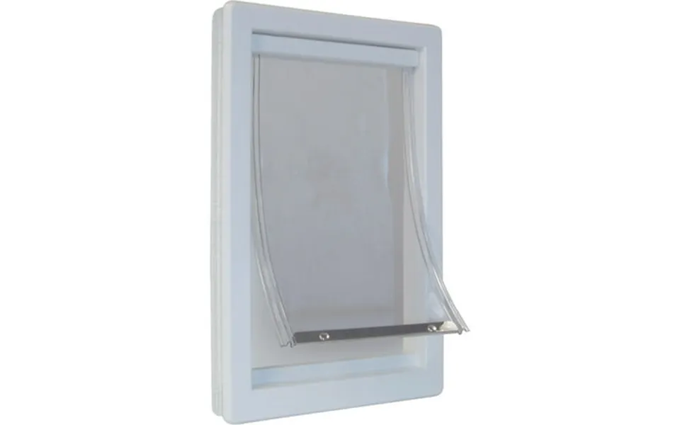 Thermoplastic pet door features inner telescoping frame that adapts to doors of 1-1 4 in. To 2 in. Thickness. Includes impact resistant super-strong thermoplastic clear vinyl flap with patented edges won t warp from use or extreme temperatures and floating bottom threshold for perfect seal. Lock-out slide keeps pet out of mischief when unsupervised. Features tamper-proof mounting so the door cannot be removed from outside. Easy installation