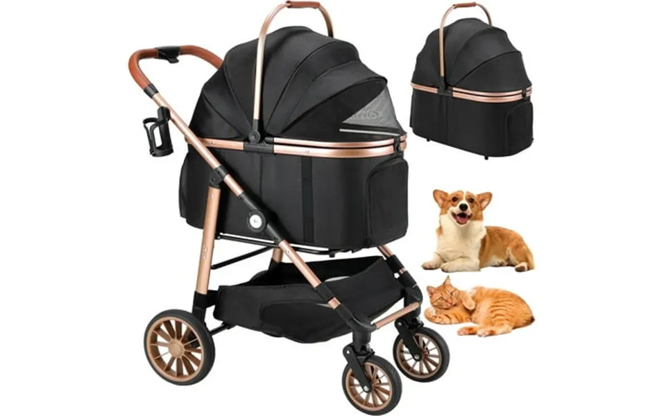 Safe & comfortable for cats & dogs up to 55 lbs keep your furry friends secure with safety belts fur-friendly buckles and a one-step brake. The spacious interior 14.17 W x 26.77 D x 11 h of this cat stroller fits two small pets. This dog stroller for medium dogs features oversized wheels 7 front 9.8 Rear for smooth rides storage pockets and a removable cup holder. One-touch folding for easy storage perfect for walks travel or vet visits to help you choose a puppy stroller that meets your requirements we recommend that you pay attention to the load-bearing capacity 55lb entire pet stroller weighs 18.52Lbs. We recommend cleaning the basket and frame with a damp wipe or cloth and drying immediately after treatment.