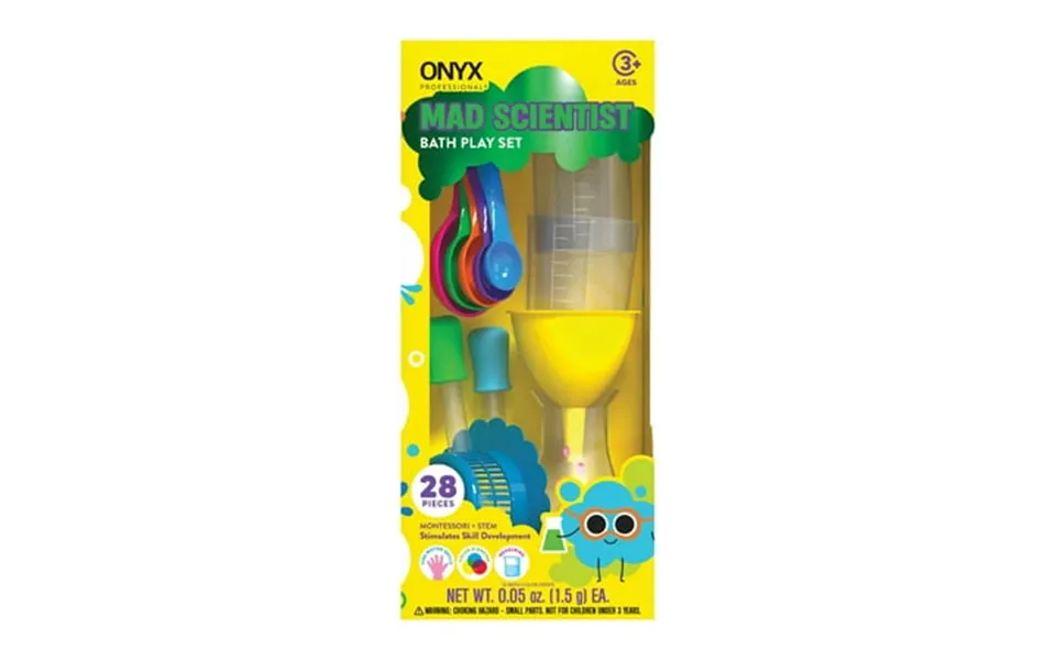 Turn bath time into a science experiment full of potions and spells with onyx professional’s mad scientist bath play kit. Turn your bathtub into a scientist s laboratory with beakers funnels and more this set has everything your little scientist needs to create the ultimate bathtub experiment. The set includes a strainer a funnel a beaker 3 mixing cups 5 measuring spoon 4 droppers and 12 color drops. The colors include orange blue red yellow green and purple but is not limited to this. We encourage your little scientist to make even more colors let their imagination run free. They can be the best scientist in the whole wide world for the night with a little mind this bathtub will be their oyster. Endless fun opportunities and creativity when the onyx bathhouse mad scientist bath play kit is involved. Lastly you can rest easy knowing that our bath play sets are cruelty-free as your little one has good clean fun for kids of all ages.