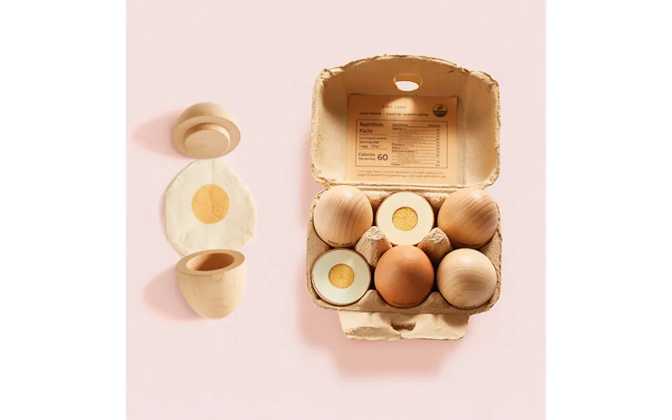 Let your little chef explore the wonder of breakfast play with our egg combo playset. From whole eggs to a sunny-side-up, this set is packed with protein-rich fun. Three of the eggs are painted with a soft, natural finish to reflect organic simplicity, while the others show playful colors that spark curiosity. Realistic variety includes 6 egg pieces: whole, cuttable, and even a cloth egg yolk perfect for every breakfast scenario. Textural discovery crafted with beech wood and soft cotton, little ones get to feel the difference between shell, yolk, and pan-fried fun. Hands-on learning cut-apart designs improve fine motor skills, while encouraging early food recognition. Stylish & sustainable clear-coated and painted finishes preserve the natural wood grain and look beautiful in any play kitchen. Roleplay-ready whether they’re cracking an egg into a bowl or pretending to fry one, it’s always a good and giggly time.