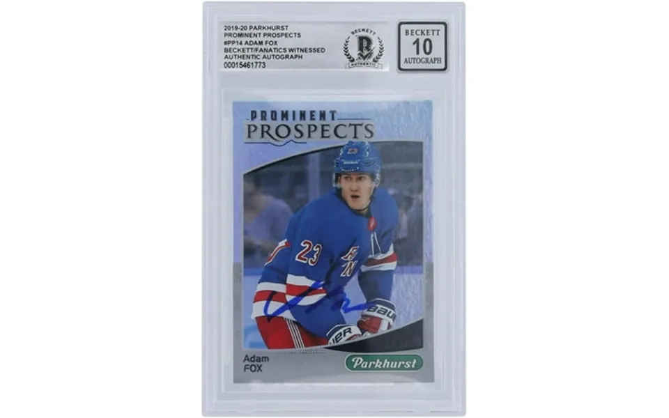 Adam fox new york rangers autographed 2019-20 upper deck parkhurst prominent prospects pp-14 beckett fanatics witnessed authenticated 10 rookie card