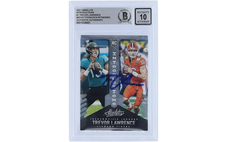Trevor lawrence jacksonville jaguars and clemson tigers autographed 2021 panini absolute introductions int-1 beckett fanatics witnessed authenticated 10 rookie card