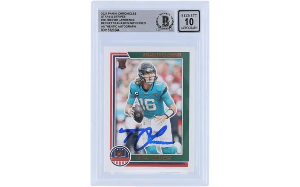 Trevor lawrence jacksonville jaguars autographed 2021 panini chronicles stars & stripes sts-tlr beckett fanatics witnessed authenticated 10 rookie card