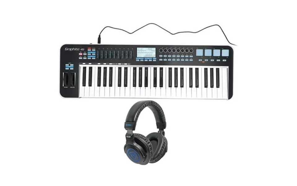 Package: samson graphite 49 key usb midi keyboard controller with aftertouch fader and pads rockville dj1500 dj headphones with detachable coil cable case and extra...show more