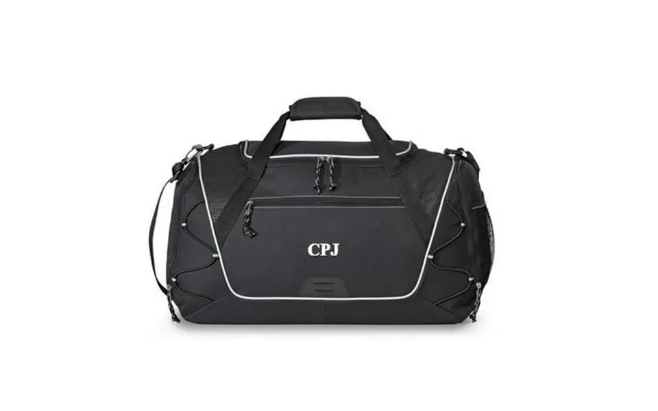 You just might be a gym rat. You have your towel your shoes your gadget wristband and even your own water bottle. They all say something about you so why are you carrying around that old sports duffel bag make a statement with our personalized sports duffel bag. Why bring just any old ratty duffel bag to the gym when you can proudly display your own personalized flair our sports duffel bag can come with your name your favorite team or even a small slogan intertwined with the canvas. Choose from our black blue green and red bags for your perfect gym duffel. Item specifications: personalize with 1 line up to 10 characters in our 20 thread colors. Front zippered pocket. Bungee cords for extra storage. Large u-shaped opening to zippered main compartment. Tone-on-tone digital print accents provide added appeal. Shoe tunnel with breathable ventilating mesh. Removable floor board for extra support. Side mesh pocket and side zippered pocket. Padded grab handles.Removable adjustable shoulder strap.