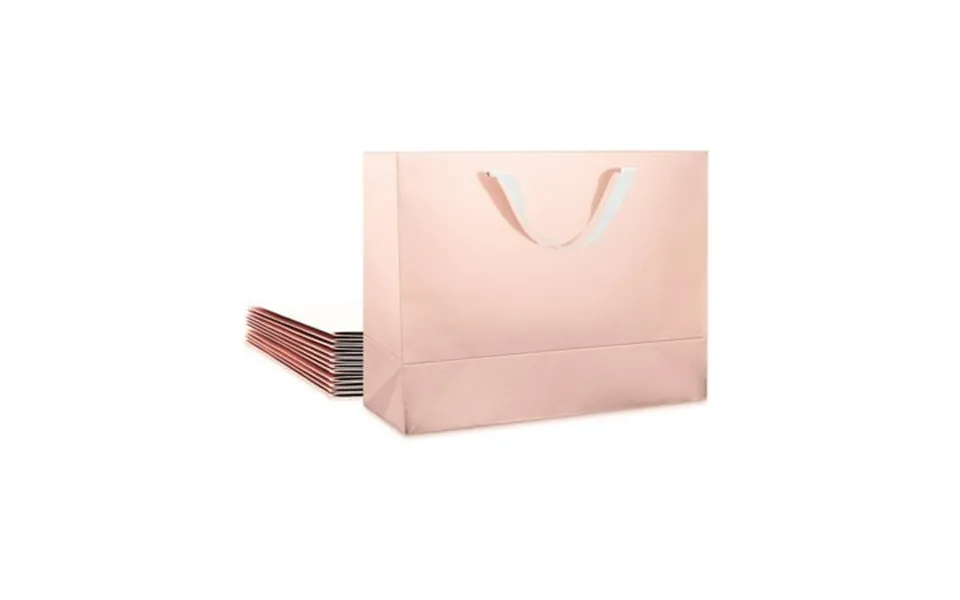 Jinming rose gold gift bags surface is glossy laminated finish and texture so that the bag more texture. The bag is made of threaded handles...show more