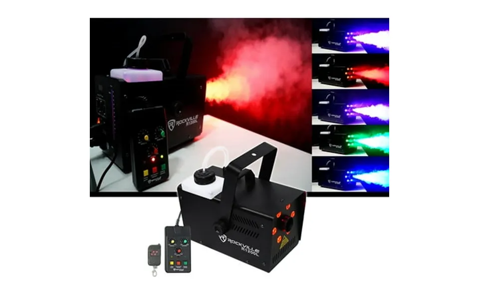 Video of r1200l: features: rockville r1200l fog smoke machine with rgb lights and included wired remote wireless remote 6 led’s built in each led is...show more