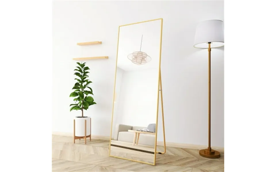 Mirro size: 65 h x 24 w . This series of beveled floor mirrors with strong metal stands they can stand freely hanging or even leaning perfect fit for elegant and beautiful simple and delicate home decor durable alloy frame: mirror frame is made of aluminum alloy material that is resistant to corrosion. Frame edges are polished smoothly and corners are fixed by metal screws they firmly protect the mirror and increase its whole sturdiness explosion-proof: hd imaging real glass with a shatterproof protective layer prevents the glass from shattering to the floor if the mirror is impacted by an external force. Perfectly ensure the safety of you and your family easy installing & saving space: greatly saving your space while reflecting lights let your room become brighter please follow the installation instructions to install easy to operate no need to worry about taking too much time and effort