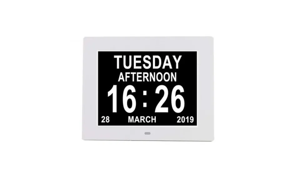 Specifications: play multimedia: u disk can play video auto play but cannot play pictures. Clock calendar: large font display with week time time date display. Language: english french german spanish italian polish dutch default english . Alarm: suitable for all people who need timing 5 groups of alarms fully meet your time of day clock. Item name: digital photo frame material: plastic display: 8 display resolution: 1024*768 support image format: jpg bmp jpeg extension type: support u-disk not included size: 19.2Cm x 16.2Cm x 1.8Cm 7.56 X 6.38 X 0.71 Approx. Notes: due to the light and screen setting difference the item s color may be slightly different from the pictures. Please allow slight dimension difference due to different manual measurement. Package includes:1 x digital photo frame