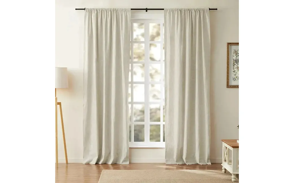Transform your space with the jawara linen cotton drapery. With 140 gsm room darkening liner, blocks 70%-80% of sunlight, enjoy added privacy and energy efficiency. Specifications: ready-made curtain material: linen cotton blend fabric weight: 274 gsm midweight lining: 140 gsm room darkening liner header style: multiway 4-in-1 hook belt, rod pocket, back tab, clip ring shading rate: 70% sold as a single panel dry clean only metal pin hooks included. The multiway 4-in-1 header gives you the flexibility to hang the curtain in four different styles: hook belt: use the included metal pin hooks to create elegant pleats. Rod pocket: slide the curtain rod through the sewn-in pocket for a clean, bunched look a classic rod pocket curtain style. Back tab: insert the rod through hidden back tabs to create gentle space without hardware. Clip ring: pair with your own clip rings not included for a relaxed, modern drape. Relevant tutorial: view the guide video on how to install 4-in-1 headers.