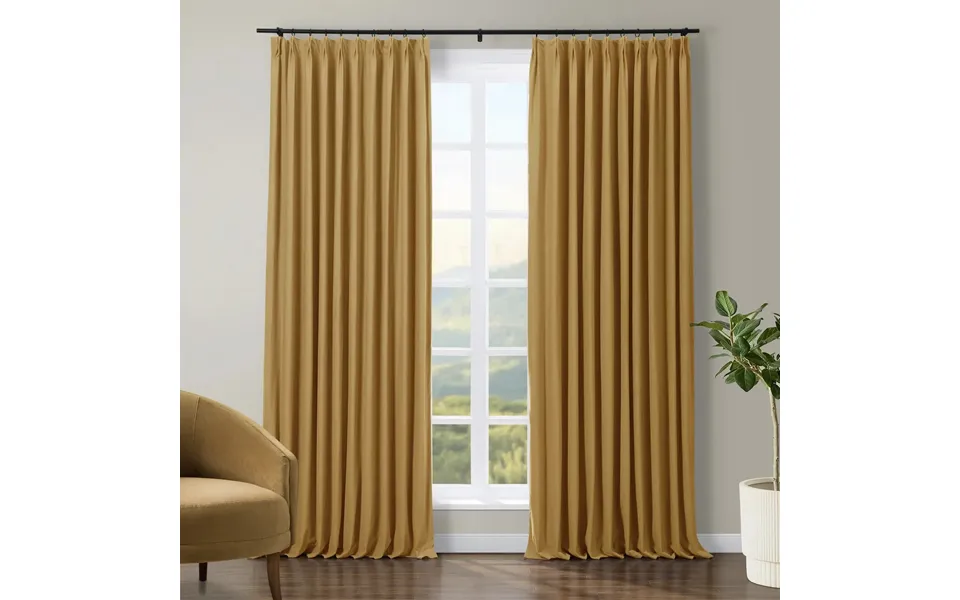 Crafted from sumptuous velvet with tailored pleats, the tavis velvet curtains bring timeless sophistication to any space. Available as velvet window curtains in stunning shades like green velvet curtains and navy blue velvet curtains, they combine plush comfort with elegant style to create a striking focal point in modern interiors. Specification: material: 100% polyester weight: 445 gsm, heavyweight fabric width: 112 inches bottom hem: 1.5 Inches opt for puddle length for enhanced light-blocking side tuck: 2 inches measured from side hem to first pleat key features: premium velvet fabric: high-density velvet with a muted matte finish and cloud-like softness. Wear-resistant and easy to maintain. Perfect drape: heavyweight construction ensures graceful, flowing folds that hold their shape beautifully. Exceptional functionality: velvet window curtains block light effectively, insulate, and dampen sound while elevating your decor, ideal for bedrooms or media rooms. Tips lengths vary by 1 due to handcraft. Color counts on dye lots. Curtain hooks included.Curtain rings and rods are not included. View our instructions on how to hang pleated curtains.