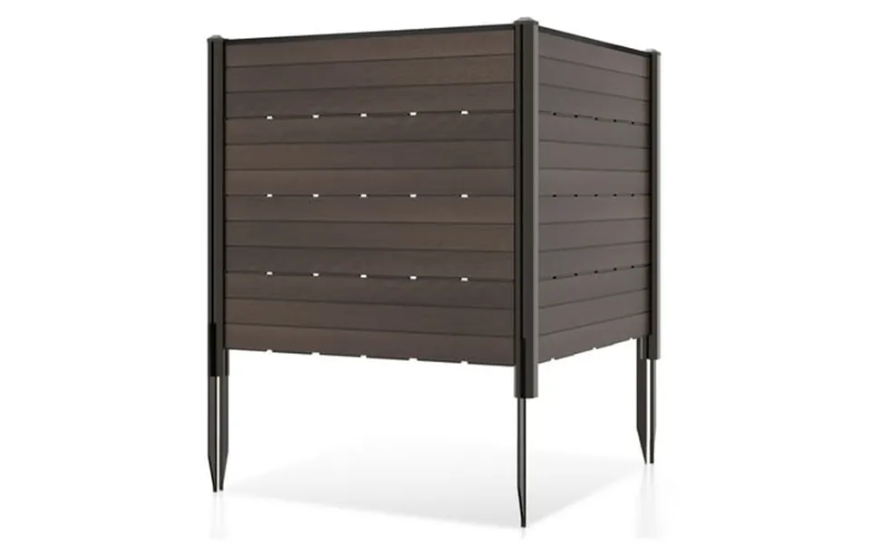 Description: enhance the privacy and aesthetic of your outdoor living space our outdoor privacy fence screen includes 2 panels measured 48 x 46 120 x 115 cm l x h and you can couple multiple sets together to create a larger privacy area catering to the size and design of your outdoor space. Constructed from advanced hdpe material this privacy fence is weatherproof fade-resistant crack resistant and aging-resistant ensuring long-term outdoor use. And there are wood-like textures on the surface giving an elegant look to your fence. To enhance its stability and wind resistance we provide 5 ground stakes for secure placement. Features: 2 panels offers extensive coverage can be configured in a right angle or flat angle crafted of hdpe resists aging and damage typically inflicted by the elements the hdpe panels are easy to clean with a wipe cloth ensure it looks pristine specification: color: brown material: hdpe pvc size of each panel: 48 x 46 l x h stake length: 18 net weight: 36.5 Lbs package includes: 1 x outdoor privacy fence screen 1 x user s manual
