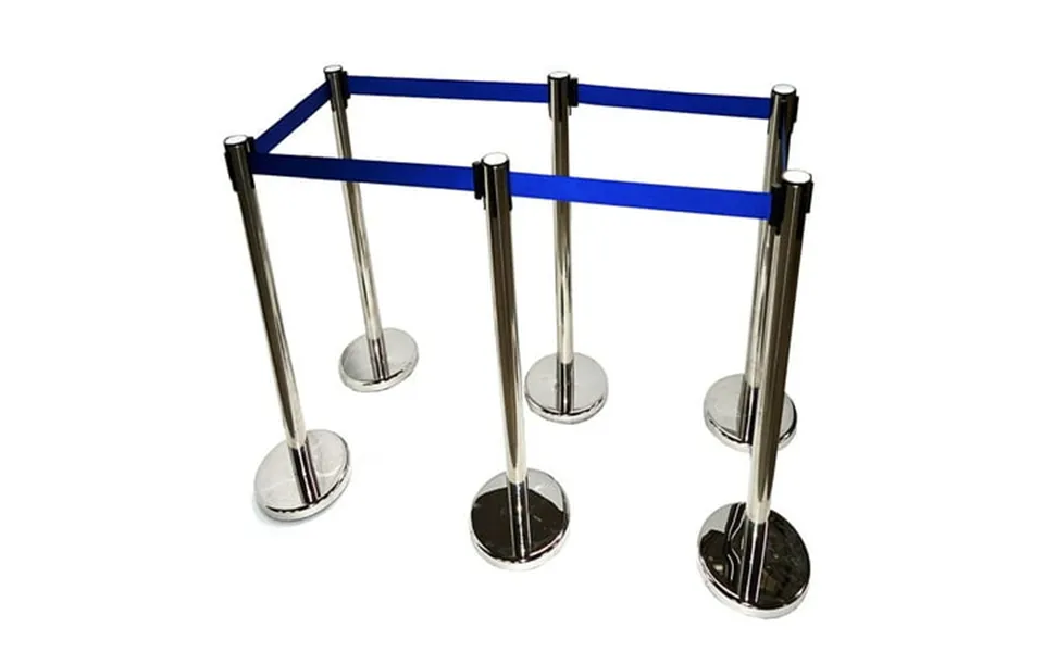 Features 1.Each cement and rubber base is about 5kg which has stronger ability against the wind than ordinary bases no rust strength evenly protect the floor not to be friction. 2.The belt color is blue and each post comes with its own belt assembly. The telescopic rails with adopted stainless steel are uneasy to rust or break. 3.4-Way adapter for convenient control management setups. Featuring flexible design it can be extended for meeting your different needs. 4.Manual locking belt end clip. Any direction can be connected together. 5.6Pcs stainless steel telescopic handrails it is widely applied in shopping centre ticket office hotel bank restaurant hospital station airport supermarket theater etc. Parameters total height: 35 base diameter: 12.2 Belt colour: blue belt length: 110 gross weight: 37kg 81.6Lb note: there is still a small piece of belt about 10-12 inch inside the pole. The length inside plus length outside is about 118 inch. Item included: 170519 preasion 6pcs stainless steel stanchions post with 110inch blue retractable belt for queue line