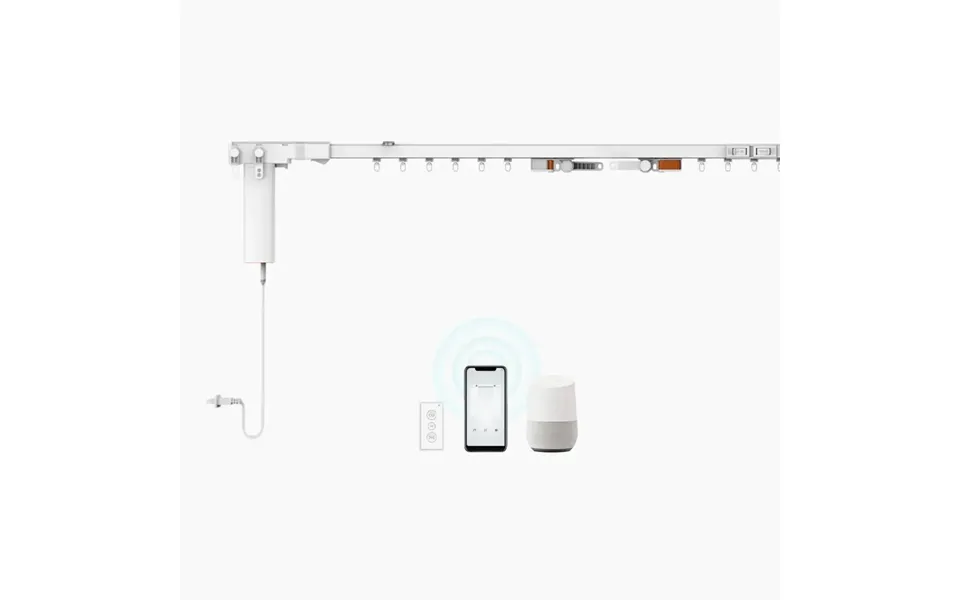 Our lark motorized curtain tracks combine intelligent control with elegant design to create a convenient and comfortable living space, allowing you to easily adjust the opening and closing of your curtains and control light and privacy as you please. Specifications: material: aluminum alloy weight capacity on solid wall : 110 lbs suitable for header styles: pinch pleat, tailor pleat, french pleat, pinch pleat with back tab, goblet, inverted box pleat, flat hook installation clearance for single track 4 inches, installation clearance for double track 7 7 8 inches. Wire length for plug-in type: 59 inches. Maximum remote control distance: 98-164 ft. Note: every single track supports only two curtain panels panels must be purchased separately . The built-in lithium battery needs to be plugged in to work. The order length refers to the total length, which includes 4 inches added by the hooks when rotated horizontally. Features: touch-initiated activation: the motor automatically engages when you manually pull the curtain about 4 inches, and the system can still operate manually during power outages. 433.92Mhz rf remote control: our stable radio frequency signal reliably penetrates walls for whole-home coverage. Smart&voice control: it can be controlled using the app tuyasmart smartlife , and voice control is available through alexa and google assistant. Intelligent memory function: the system automatically remembers your preferred curtain positions and customized opening closi...