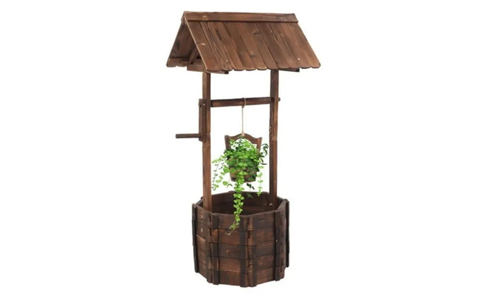 Introductions: here to introduce you to our outdoor reinforced and anticorrosive wooden wishing well flowerpot. The flower pot made of solid wood has a heavy texture durable and firm. Outdoor display complement each other with flowers trees and trees showing a rustic rustic style. The surface of the board is smooth after many times of shaping and grinding the texture is clear and the corrosion resistance is durable for a longer time. The surface undergoes high-temperature carbonization treatment. What are you still hesitating about order quickly features: 1. Fir wood is more secure 2. Carbonized at high temperature 3. Surface protection 4. Rural retro style 5. Durable and firm specifications: 1. Material: fir wood 2. Color: carbonized color 3. Product size: overall size: ï 54.5*115Cm ceiling size: 54*43*24cm wall thickness: 11mm bucket size: ï 16.5*25.5Cm wall thickness of 10mm length of hanging rope: 112cm well size: ï 42*31.75Cm wall thickness 17mm column wall thickness: 22mm 4. Product design: carbonized anticorrosion without the base 5. Weight: 14.99Lbs 6.8Kg package includes: 1 x wooden wishing well flowerpot including assembly parts