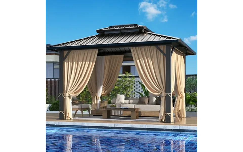 Features modern minimalistic design powder-coated aluminum frame heavy-duty steel construction uv-resistant steel canopy top ordinary waterproof peripheral cloth includes eight ground stakes wind resistance level:...show more