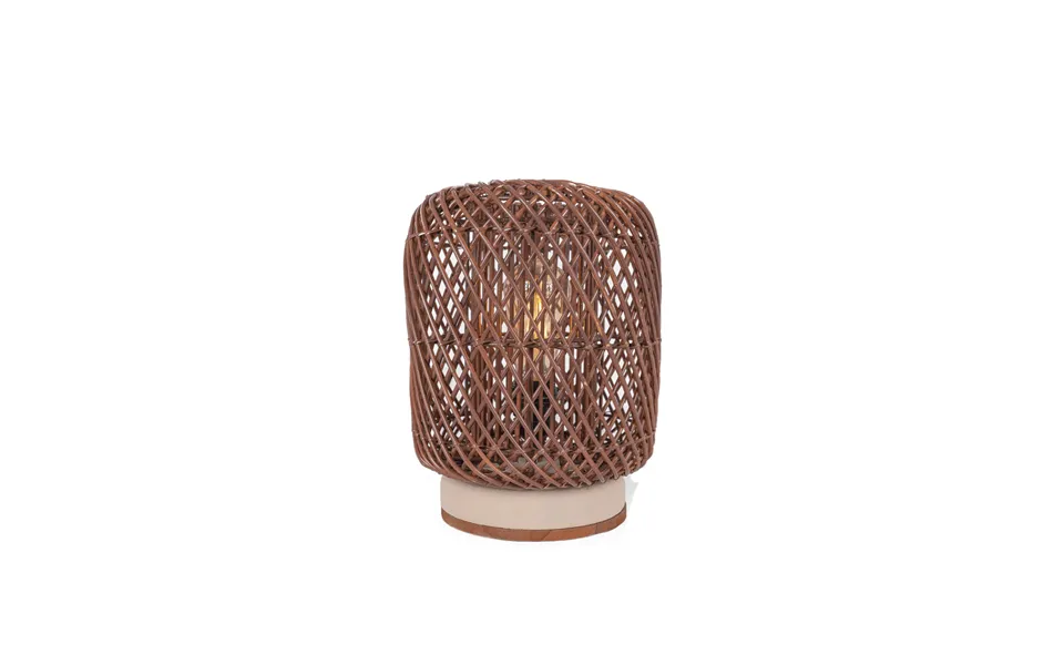 Crafted in a design using a metal frame and rattan weaving to create a rustic and pleasing woven appearance. The lampshades placed on a hand-turned sandstone base that provides both stability and security. The stone base stands on a detail of reclaimed teak wood. Palma lampshade is operated with a switch and will provide a warm, atmospheric light and shade. Small: w9 x d9 x h12 in w22 x d22 x h30 cm medium: w10 x d10 x h16 in w26 x d26 x h40 cm large: w12 x d12 x h20 in w30 x d30 x h52 cm extra large: w15 x d15 x h24 in w38 x d38 x h62 cm material reclaimed teak wood, stone, rattan