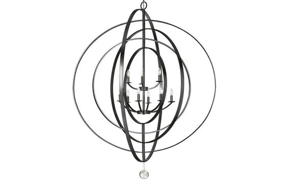 9 Light chandelier-matte black finish. Spheres of steel intertwine creating the industrial luna collection. A two toned finish allow the orb fixture to glow from within. The industrial wrought iron bring an rustic elegance to any room of the house including a bedroom living room dining room or even over a kitchen island luna collection features a versatile farmhouse & rustic design. A design that uses an emphasis on natural organic and raw materials to create an earthy and casual atmosphere. Each ring is manually adjustable to give you a customized look. English bronze metal finish perfect for farmhouse & rustic settings. 48 W x 58.5 H 9 light 60- watt e12 candelabra base steel authorized for use in damp high-humidity interior locations or protected exterior locations. Meets united states ul underwriters laboratories product safety standards the luna collection is a crystorama best seller with varied sizes from 12 inch to 60 inch and a variety of finished options. Assembly required: yes canopy included: yes canopy diameter: 6 chain length: 72.00 Dimable: yes assembly required: yes canopy included: yes canopy diameter: 6 chain length: 72.00 Dimable: yes part number: 49-bel-4173426 family: park lee road material: steel width diameter: 48-inches height: 58.5-Inches