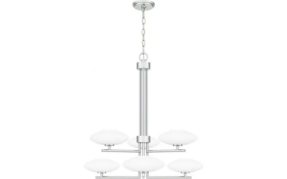 Collection: chenal material: steel finish color: polished chrome width: 29.25 Height: 27.5 Length: 29.25 Depth: 29.25 Hanging method: chain chain length: 96 lamping type: xenon number of bulbs: 6 wattage: 40 watts dimmable: yes desc: select a finish that best suits your space with the chenal chandelier. Aged brass creates warmth polished chrome adds glamour and matte black offers a grounding effect. Milky opal etched glass shades complete the look. Matte black finish offers a bold grounding effect opal etched glass shades softly cast light durable steel construction is built to last and offers a clean polished look complements a variety of contemporary transitional mid-century and minimalist interiors can be installed on sloped ceilings.