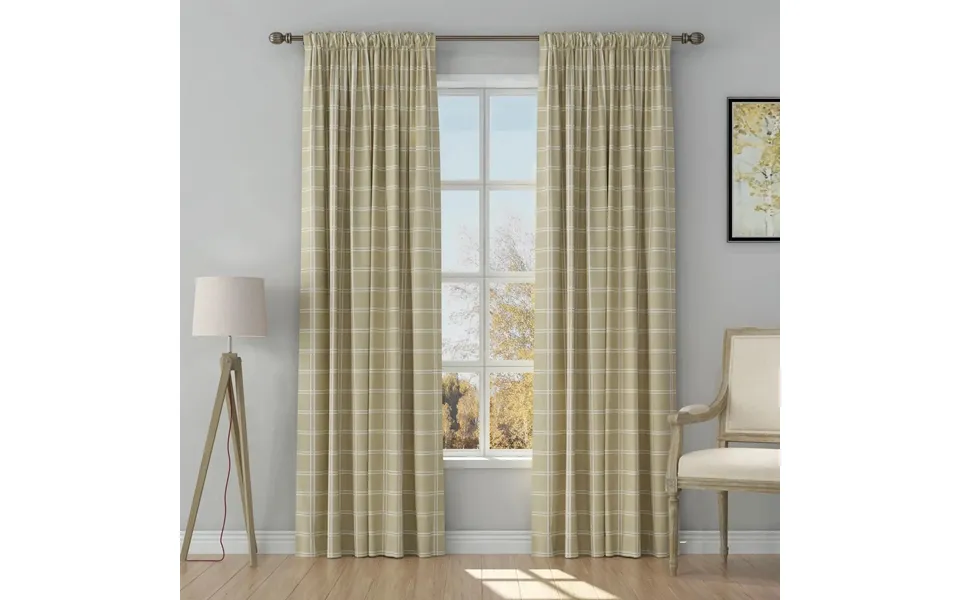 Stefana Silber Print Linen Curtain Drapery Soft Top - Double Windowpane Khaki White Dw40 see the best price