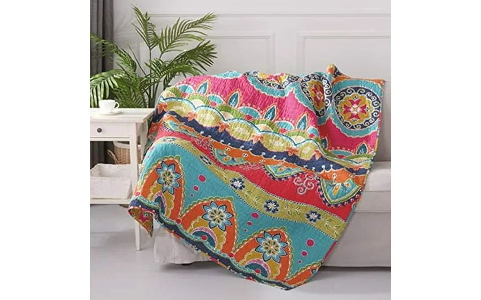 Cotton the amelie design: one of our most popular throws amelie is inspired by antique colorful fabrics with a bright colorful medallion and a charming reverse pattern of bright medallion. A bound border provides contrast and texture to complete the look. Soft and comfortable luxury: made from 100% cotton and filled with a cotton rich filler that includes polyester and other fibers this quilt will never feel heavy stiff or uncomfortable the amelie quilt and pillow sham set has an ultra soft feel that you ll simply love. Easy care: pre washed for your convenience the amelie throw is easy to look after. Simply machine wash on a cold gentle cycle then line dry or tumble dry at low temperature. Coordinate your room decor: create a wonderful space with our coordinated reversible matching bed set. The intricate bright medallion design brings colorful accents into your home and will match a variety of different looks and bedroom decor. You can also freshen your room with coordinating quilt sets euro shams decorative pillows and drape panel from thecollection.