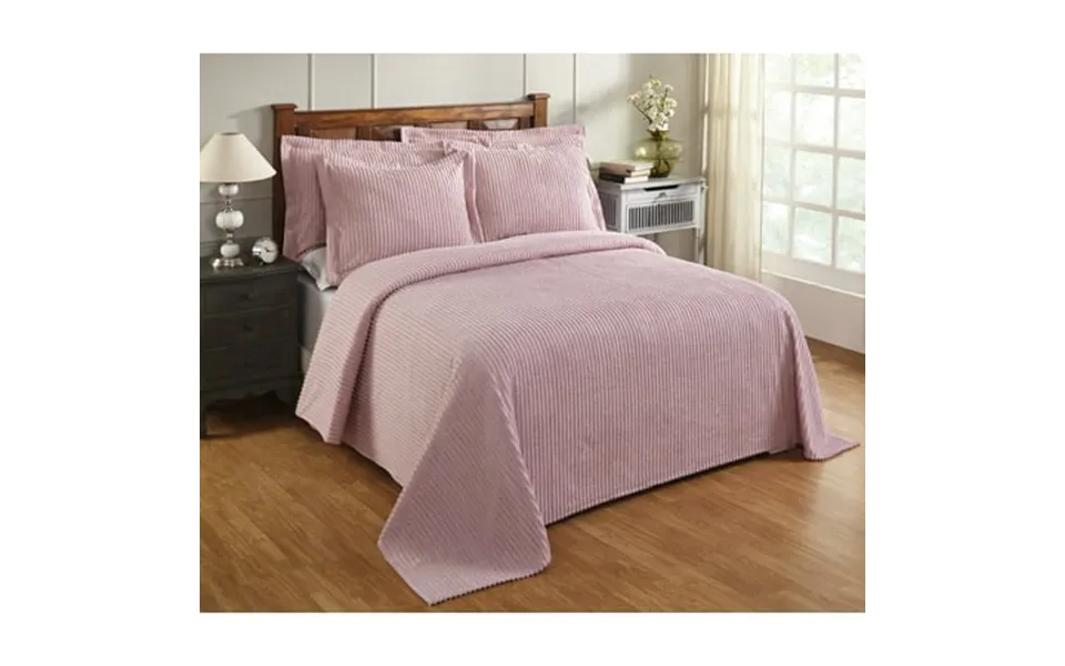 Upgrade your bedroom décor with the better trends 1 piece bedspread in queen size designed for both style and comfort. This 100% cotton chenille bedding coverlet features a classic stripe pattern adding a touch of elegance to any bedroom. The soft and cozy texture makes it perfect for all seasons offering warmth in the winter and breathability during warmer months. Measuring 102 x110 this queen bedspread provides full coverage draping beautifully over your bed for a luxujullianus look. The 300 gsm fabric ensures durability and long-lasting softness while the tufted weave enhances its plush feel. With a 6mm pile height this bedspread delivers a rich texture that elevates your bedding experience. Available in a variety of colors including blue burgundy chocolate gray ivory navy pink plum sage teal white and yellow this bedspread effortlessly complements different bedroom styles. The solid backing enhances stability while the pre-washed fabric ensures minimal shrinkage and maintains softness wash after wash. Designed for convenience this machine-washable queen bedspread is easy to maintain making it an excellent choice for everyday use. Experience the perfect blend of style comfort and functionality with this bedspread queen size part of the jullian collection by better trends.