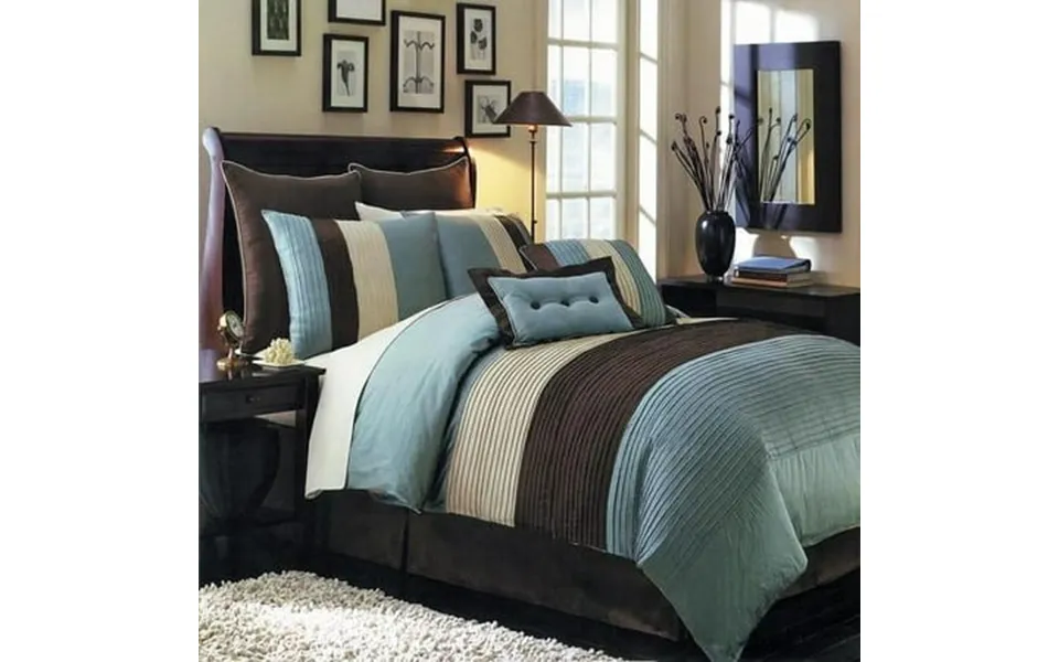 Enliven your sleeping quarters with the hudson comforter set which will create an aura of calmness in any bedroom. This comforter set combines a few different classic designs together with nature-inspired color-schemes for a look that appeals to people of all ages. The set includes one comforter bed skirt decorative pillows euro pillow shams standard pillow shams and pillowcases.100-Percent polyester microfibernature-inspired colorsbold color blocking for strong design impactall the pieces you need for a flawlessly decorated bedroyal tradition warrants all it s products against all defectsmachine-washableavailable sizes:twin-xl 6-piece set includes: one comforter 68 x 90 one bed skirt 39 x 80 with 15 drop one standard pillow shams 20 x 26 each one euro pillow shams 26 x 26 each one decorative pillow 12 x 18 and one decorative pillow 18 x 18 .Full 8-piece set includes: one comforter 86 x 86 one bed skirt 54 x 75 with 15 drop two standard pillow shams 20 x 26 each two euro pillow shams 26 x 26 each one decorative pillow 12 x 18 and one decorative pillow 18 x 18 .Queen 8-piece set includes: one comforter 90 x 92 one bed skirt 60 x 80 with 15 drop two standard pillow shams 20 x 26 each two euro pillow shams 26 x 26 each one decorative pillow 12 x 18 and one decorative pillow 18 x 18 .Olympic queen 8-piece set includes: one comforter 98 x 92 one bed skirt 66 x 80 with 15 drop two standard pillow shams 20 x 26 each two euro pillow shams 26 x 26 each one decorative pillow 12 x 1...