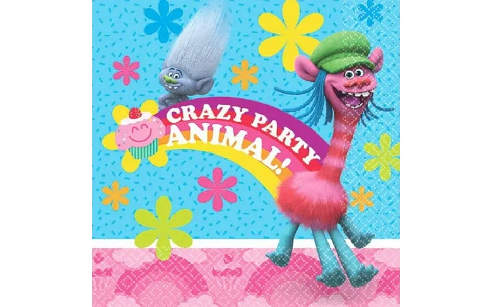 Trolls crazy party animal 16 ct beverage napkins 2 ply paper made in usa