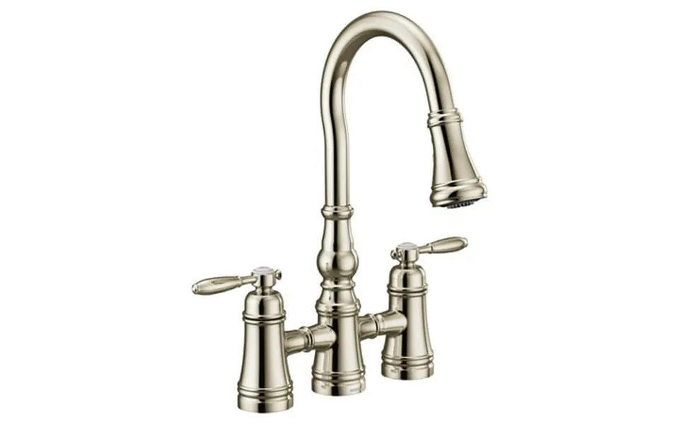 The moen s73204nl weymouth two handle pulldown kitchen faucet combines timeless design with modern functionality. Featuring a polished nickel finish this faucet is not only...show more
