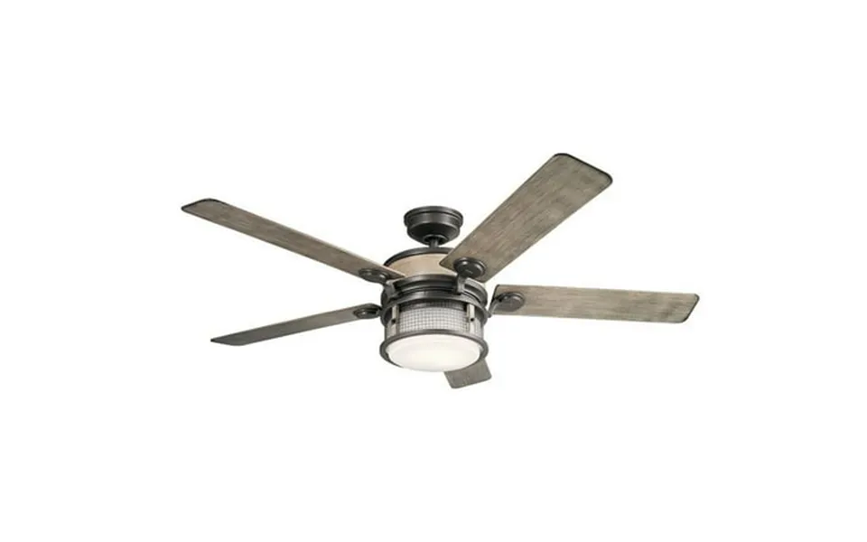 Ahrendale Ceiling fan with light kit With Kichler lighting-310170avi-collection: ahrendale material: steel finish color: anvil iron blade span: 60 blade color: distressed antique gray number of blades: 5 blade pitch: 12 fan motor size: 188mm x 20mm mm fan motor type: ac hanging method: stem stem rod number and lengths included: 1-4.5 Light kit type: integrated lamping type: led cri: 80 color temperature: 3000 kelvin control type: wall wet location: wet rated desc: we ve added the popular rustic styling of our arhendale collection of interior and exterior fixtures to a 60 inch ceiling fan that delivers inside or out. The auburn stained finish and an anvil mesh shade add a timeworn charm over seating areas in game rooms or anywhere you want a touch of industrial-inspired style. Rod length s : 1-4.5 Dimmable: yes. -Ahrendale Ceiling fan with light kit With utilitarian inspirations 16.5 Inches tall by 60 inches wide-anvil iron finish