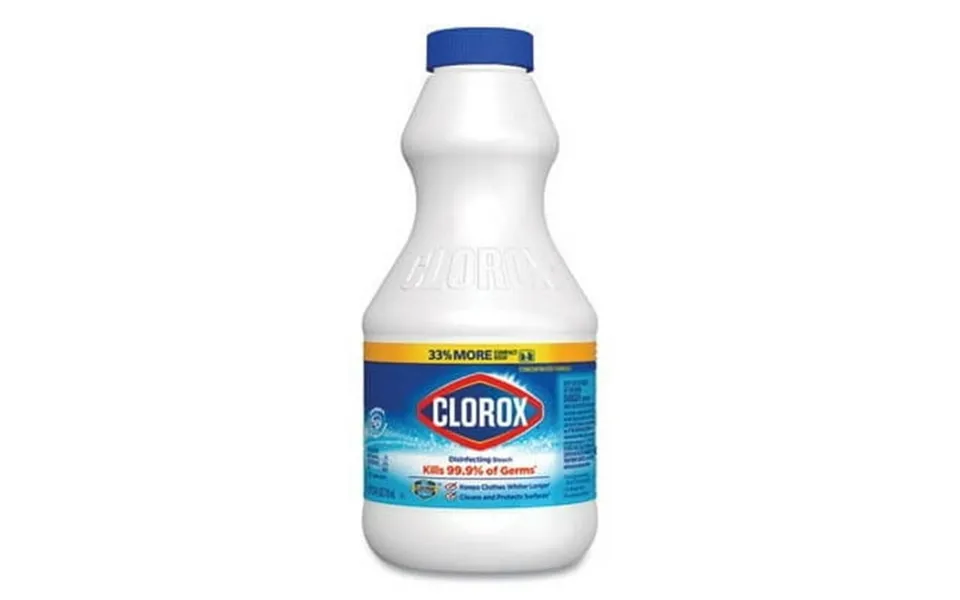 Clorox disinfecting bleach with cloromax kills 99.9% Of household germs and bacteria including norovirus flu virus mrsa e. Coli and salmonella left on household surfaces such as countertops floors toilets and more. This concentrated bleach in its slimmed down version makes it easier to handle and easier to pour compared to the 121 oz clorox disinfecting bleach. Get more cleaning power per drop compared to clorox disinfecting bleach with this concentrated version with 33% more compact dose reducing the amount of bleach required for cleaning. This cleaning bleach contains cloromax technology to protect household surfaces as it cleans so stains won t stick and cleanup is easier. It also whitens whites and keeps clothes whiter longer while removing 70% more stains than detergent alone. Remove tough laundry stains from white clothes including red wine grass dirt and blood stains. A little goes a long way with clorox disinfecting bleach. Application: bleach applicable material: ceramics cement concrete enamel fabric glass laminate metal plastic chemical compound: sodium hypochlorite sodium hydroxide dirt types: bacteria fungus germs grime mildew mold organic matter soil stains.