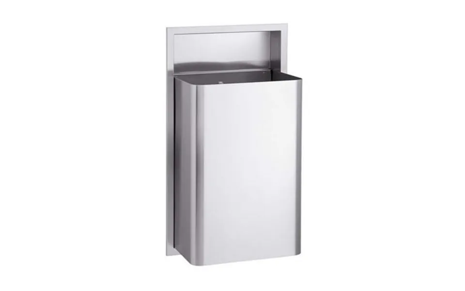 Recessed Bradley waste receptacle. 22 Gauge stainless steel flange in architectural satin finish. One-piece seamless construction 1in. Wide with 1 4in. Return. Heavy gauge stainless...show more