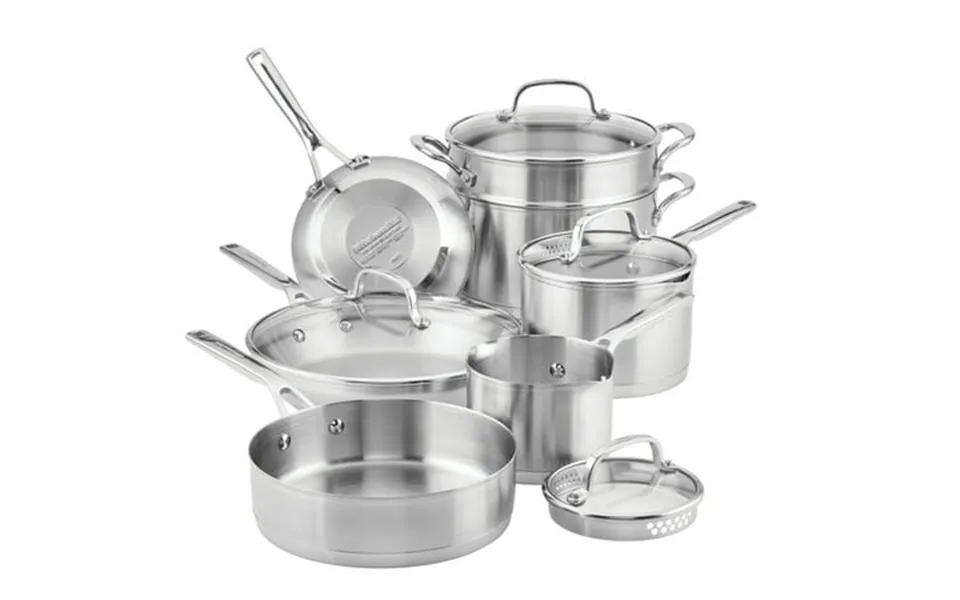 Experiment with and discover new flavors and techniques when cooking with kitchenaid 3-ply base stainless steel cookware designed with an extra thick layer of heat-conducting...show more