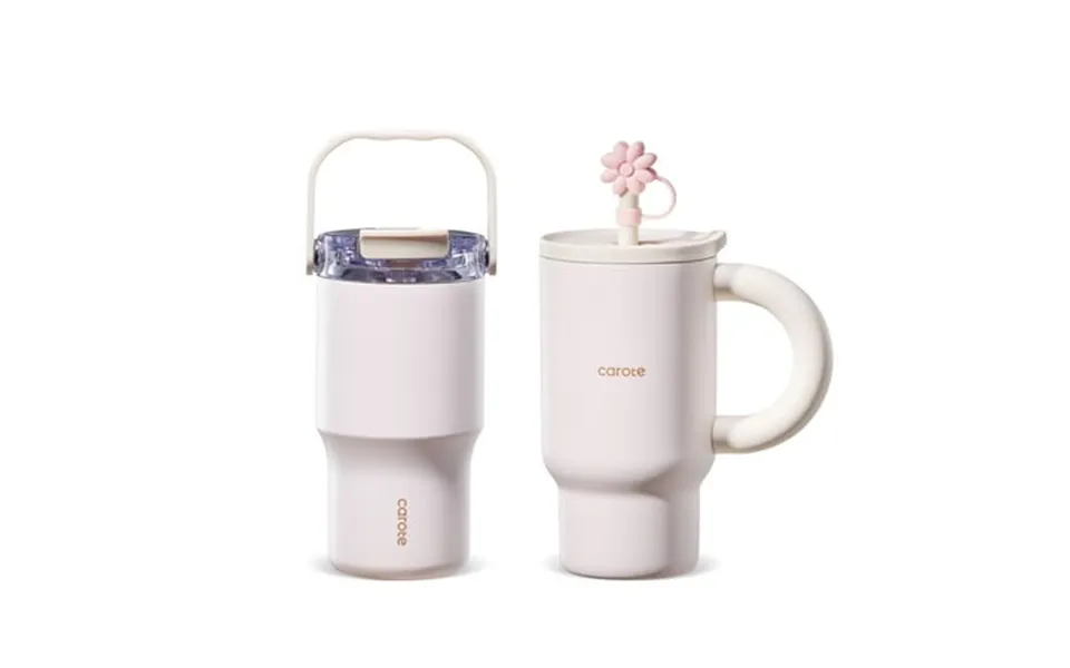 The carote highlight series 2-pack includes a 27oz handle tumbler with a daisy-shaped silicone straw cap reinforced handle and non-slip base plus a 20oz tumbler...show more