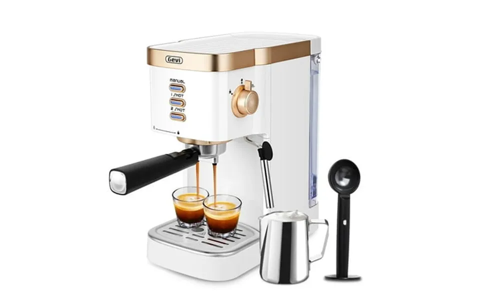Elevate your coffee experience with the gevi 20-bar espresso machine. Equipped with a powerful italian pump this machine delivers exceptional pressure to extract the full flavor and aroma of your coffee. The frothing milk wand creates silky smooth milk foam for delectable cappuccinos lattes and other specialty drinks. The accurate dual temperature control system allows you to adjust the water and milk foam temperature for the perfect cup every time. With a large 1.5L water tank capacity and quick heat-up time this espresso machine is designed for convenience and performance making it an ideal choice for coffee enthusiasts at home or in the office.