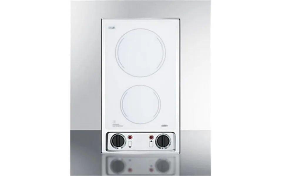 S collection of radiant cooktops offers quality choices for a variety of small kitchen applications. The is a 120v 2-burner cooktop for built-in installation in cutouts sized 10 1 8 w x 18 5 8 d. The surface is made from eurokera ceramic glass in a classic white finish offering easier cleanup and faster cooking than traditional coils. The base and trim are finished in brushed stainless steel. The includes a rear 7 900w burner for larger cooking vessels and a smaller 5.75 500W front burner ideal for heating smaller pans. Push-to-turn knobs in a matte black finish help to prevent accidents with indicator lights for each burner for added safety. The controls are located towards the front preventing users from having to reach over hot burners. The includes a pre-installed 3-pronged cord for faster setup. With a clean design and great price ’s electric cooktops offer top value for homes hotels yachts and other settings with unique kitchen needs. Browse our website for additional cooktop choices including 220v radiant cooktops in white and black gas cooktops and induction burners. Features two-burner electric cooktop with 120v operation white ceramic surface in quality eurokera glass stainless steel trim offers an added touch of modern style added safety with indicator lights and upfront push-to-turn knobs includes a preinstalled power cord eurokera glass surface 115v operation cord included two heating elements push-to-turn controls indicator lights ada compliant design design...
