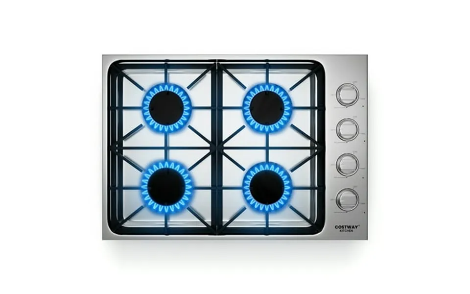 Cook with our quality stainless steel gas cooktop our 30 inches built-in stovetop has 4 sealed burners for quick and intense heating so that you can enjoy delicious food without waiting. It can be widely used for boiling melting frying or steaming. Besides it’s convenient to convert it into lp use liquid propane conversion kit included satisfying different requirements. The premium 304 stainless steel material and cast iron grates make it strong and sturdy enough to provide a long-lasting lifespan. Meanwhile the smooth stainless steel surface and dishwasher-safe cast iron grates can be easily cleaned. Feature 4 powerful burners for efficient cooking abs knobs for temperature adjustment csa certification for higher security suitable for placing grill pan boiling pot frying pan or tea pot ng lp convertible design meets your different needs dishwasher-safe cast iron grates are super easy to clean designed with a gas connection device and 4.8 Ft power cord smooth 304 stainless steel surface for easy cleaning stable base help it stay steady on any counter specification color: silver material: 304 stainless steel galvanized sheets cast iron abs overall dimension: 30 x 21 x 4.4 L x w x h total burners: 4 ignition type: electrical electrical requirements: 120v frequency: 60 hz cord length: 4.8 Ft net weight: 38.5 Lbs package includes: 1 x gas cooktop 1 x conversion kit 1 x instruction