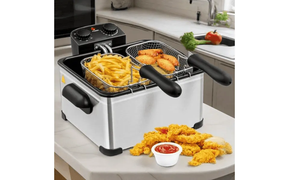 Spaco electric deep fryer 5.3Qt 21-cup stainless steel 1700w professional electric deep fryer with triple basket and cool touch handles silver -good choice to fry different food such as fries onion rings and fried chicken-1700w heating element to heat up quickly and keep food crisp-5.3Qt oil container and 3 large baskets provide you with sufficient frying space-equipped with temperature control knob from 302 to 374 degree fahrenheit and 60-minute timer to meet your different needs-cool touch handles for convenient handling-lid with view window to prevent hot oil splash and keep clear view-anti-slip pads for extra stability-premium stainless steel ensures high durability and sturdiness-anti-scalding material to protect your hands-removable lid and heating element for easy detaching-enamel-coated inner liner is non-stick and easy to clean color:black sliver material:stainless steel iron overall dimension:12 x 11 x 8.5 L x w x h dimension of large basket:15.5 X 10.5 X 5 l x w x h dimension of small basket:15 x 5.5 X 5 l x w x h oil capacity:5.3Qt food capacity:21 cups power rating:1700w adjustable temperature range:302-374 degree fahrenheit net weight:7.7Lbs