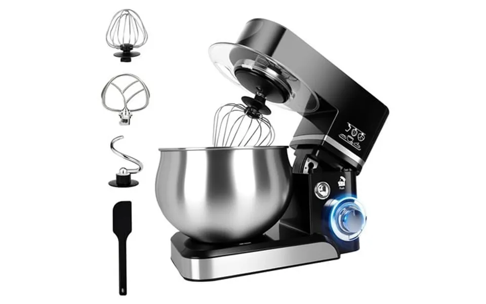 This powerful 800w stand mixer features a high-performance pure copper motor with 6 adjustable speeds and a pulse function offering versatile mixing for a variety of recipes with low noise 76db . The 6.5-Quart stainless steel bowl provides ample capacity for baking cakes breads cookies muffins and more making it ideal for any kitchen. Designed with a convenient tilt-head for easy access the mixer also boasts a sleek stainless steel trim and blue led power indicator with a stylish black finish and dual-layer painting. It includes essential attachments whisk dough hook and beater plus a splash guard with access hatch to add ingredients mess-free. This multifunctional food mixer is both practical and elegant making it a thoughtful gift choice for family and friends.