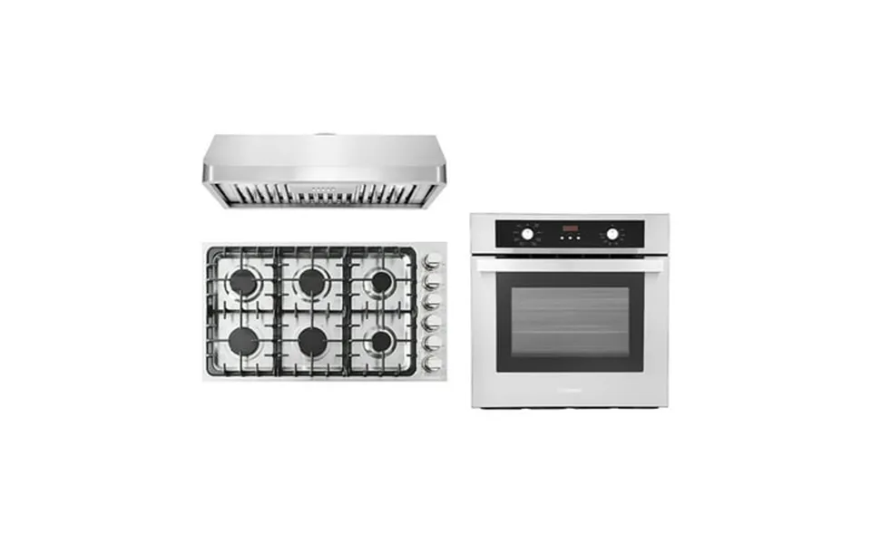 Cooktop: 36 drop in gas cooktop with 6 burners range hood: 36 500 cfm convertible under cabinet range hood oven: 24 single electric wall oven...show more