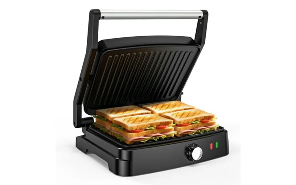 4 Slice large panini press 2 large 11 x 9.8 Cooking plates hold 4-slice sandwiches or 6 medium panini bread at one time. 180 Grill and press housing for healthy versatile cooking the indoor grill can work as a panini press sandwich maker countertop steak grill and roaster machine. Fast & even heating the sandwich press can use less time to preheat the food with powerful 1600w only taking 1-2 minutes then make your breakfast or grilling foods. Indicator light: built-in a red power light and a green ready light the green light will turn on when the panini press is ready to cook your sandwich or panini. Safety: intelligent temperature control prevents overheating giving you a cooking experience without any worries. Temperature control indoor grill intelligent temperature control with temperature range 120