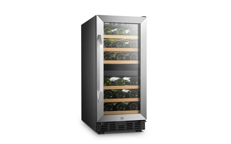 Whether you want a built in or freestanding wine cooler in your home kitchen or entertainment area this 15 inch lanbo s under counter compressor wine refrigerator is the best choice for you to store all of your favorite wine collection. This dual zone compressor wine fridge offers a storage capacity of 26 bottles 750 ml standard bordeaux bottles. This dual zone wine fridge operates quietly with extremely minimal vibrations. The only way to properly protect your wine is to store them in the wine cooler even for short term storage. Serving temperature has a big effect on how a wine smells tastes and feels in your mouth. Unit dimension and weight: 24.9 15 34.1 79.4 Lbs