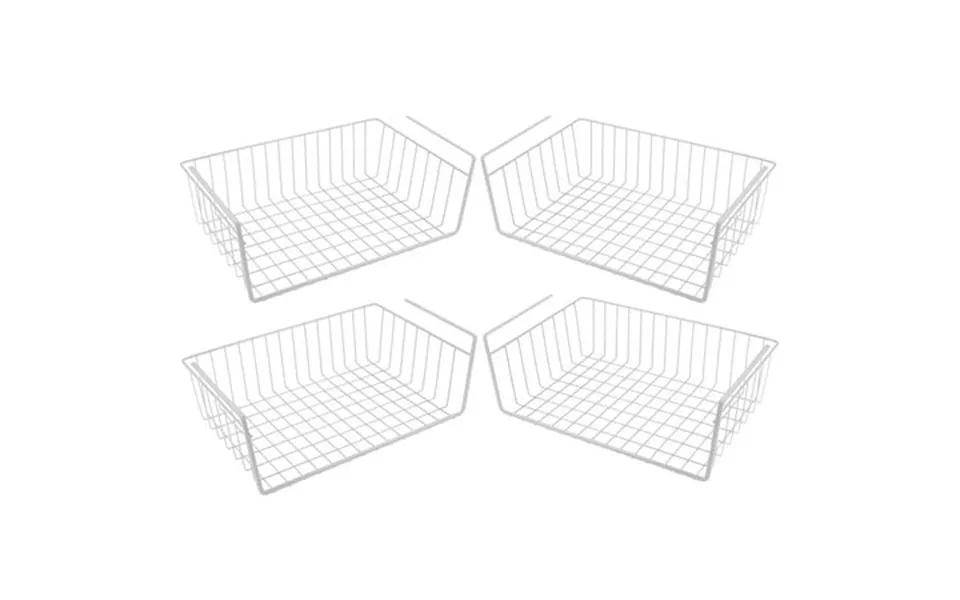 Re-organize your whole kitchen with the modern home set of wire hanging basket shelves. This versatile storage solution also works great in offices and hobby rooms to keep supplies organized and is ideal for linen closets to store hand towels and sheets. Perfect in laundry rooms for dryer sheets cleaners and more. Simply slide them onto your cabinets or pantry shelved to create a new storage shelf where you have space. Offered in 4 different sizes: 10.25 X 10.25 X 5.5 11.25 X 10.25 X 5.5 15.25 X 10.25 X 5.5 And 19 x 10.25 X 5.5 . Each basket is white powder coated durable steel and will slide onto shelves up to 0.75 Thick. Built to last a lifetime. Available individually and in sets..